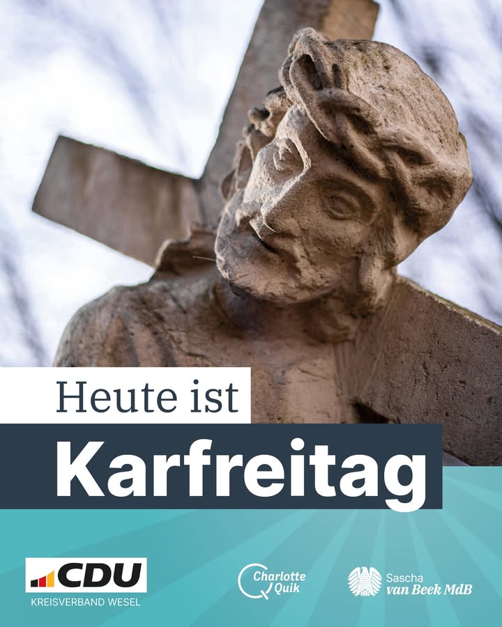 Ein stiller Tag. Ein Tag des Innehaltens.Gemeinsam erinnern wir uns heute an das Leiden und Sterben Jesu Christi. Karfreitag führt uns vor Augen, was es heißt, Verantwortung zu tragen, Lasten auszuhalten und für andere einzustehen.Gerade in einer Zeit voller Krisen und Unsicherheiten bekommt dieser Tag eine besondere Bedeutung. Viele Menschen erleben Sorgen, Verluste oder Zweifel. Umso wichtiger ist es, Räume der Ruhe zu schaffen und sich auf das Wesentliche zu besinnen.Karfreitag steht für Ernsthaftigkeit, aber auch für Hoffnung. Für den Gedanken, dass nach dunklen Zeiten wieder Licht kommen kann.Gemeinsam wünschen wir Ihnen und Euch einen stillen, besinnlichen Karfreitag.