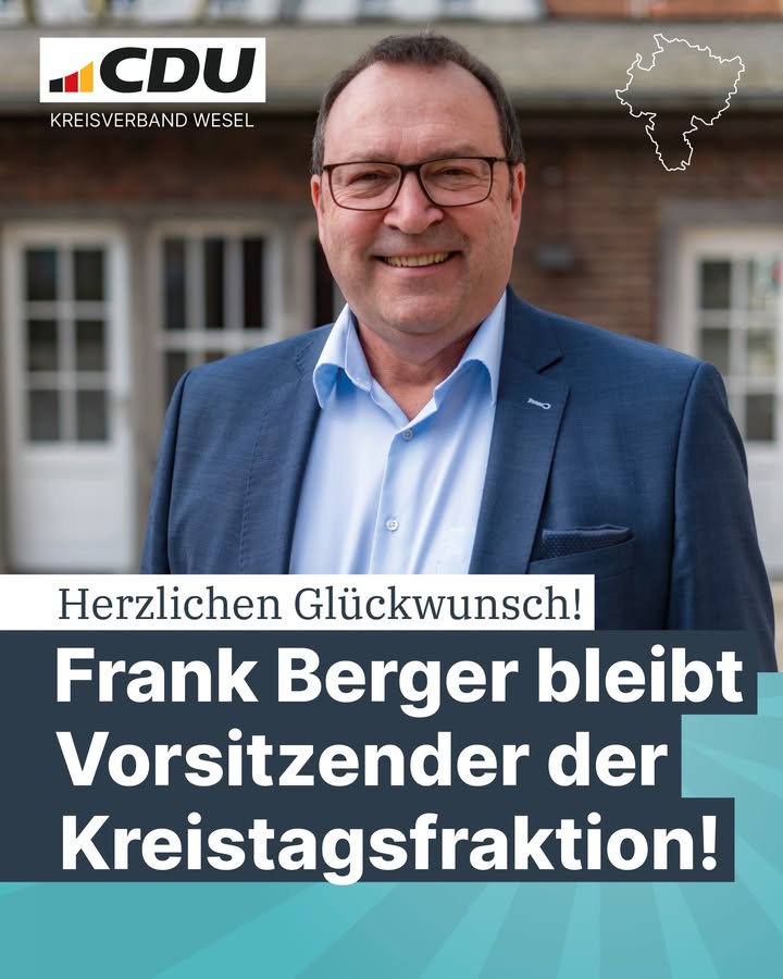Herzlichen Glückwunsch an Frank Berger zur Wiederwahl als Vorsitzender der CDU-Kreistagsfraktion Wesel! 🎉 Mit seiner Erfahrung, seinem Einsatz und seiner klaren Haltung wird er unsere Arbeit im Kreistag weiter erfolgreich führen.Wir freuen uns auf die kommenden Jahre der Zusammenarbeit ? für einen starken Kreis Wesel!#CDUFraktion #KreisWesel #Glückwunsch