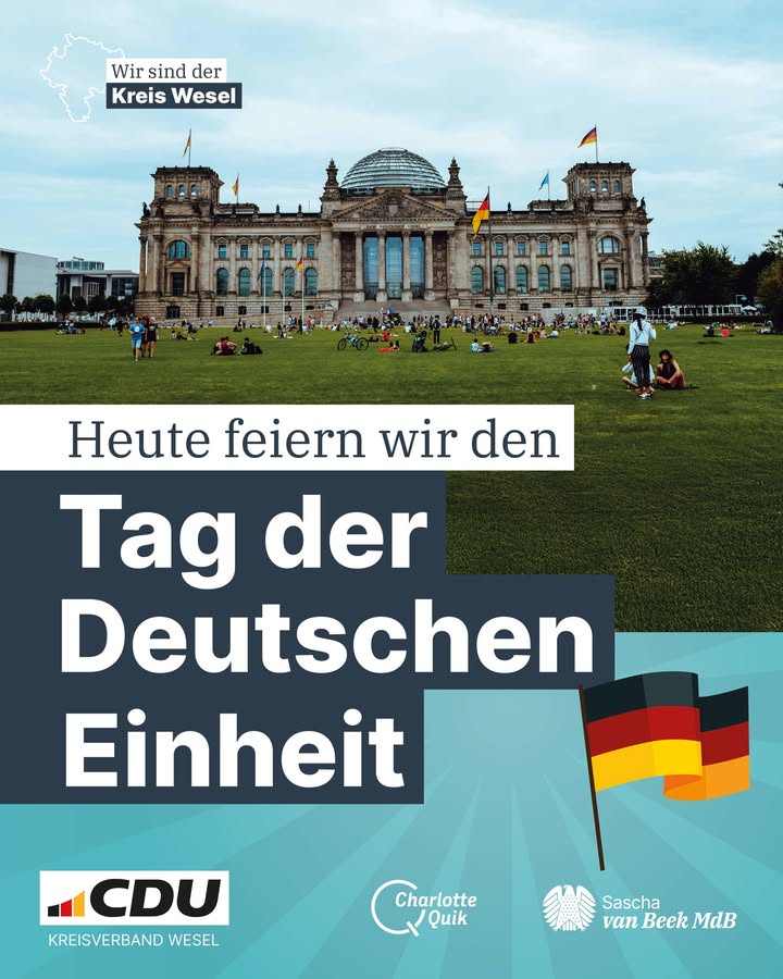 Heute feiern wir 33 Jahre Deutsche Einheit. Der 3. Oktober erinnert uns daran, dass Freiheit, Demokratie und Zusammenhalt keine Selbstverständlichkeit sind, sondern das Ergebnis von Mut, friedlichem Protest und gemeinsamer Verantwortung. ✊