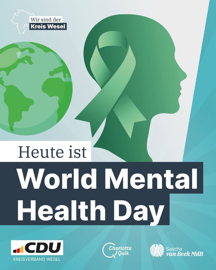 Psychische Gesundheit geht uns alle an. ?Der Welttag der seelischen Gesundheit erinnert uns daran, dass jede*r von uns Belastungen erleben kann ? und dass Offenheit, Verständnis und Unterstützung entscheidend sind.👉 Lasst uns Vorurteile abbauen.👉 Lasst uns zuhören und helfen.👉 Lasst uns über mentale Gesundheit sprechen ? heute und an jedem Tag.